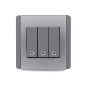 There is a Schneider 4-gang 1-way switch model with specifications such as 10 AX at 250 V AC and it features a fluorescent (white) surround and grid plate made of polycarbonate. It uses pillar terminals for wiring